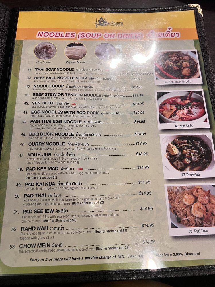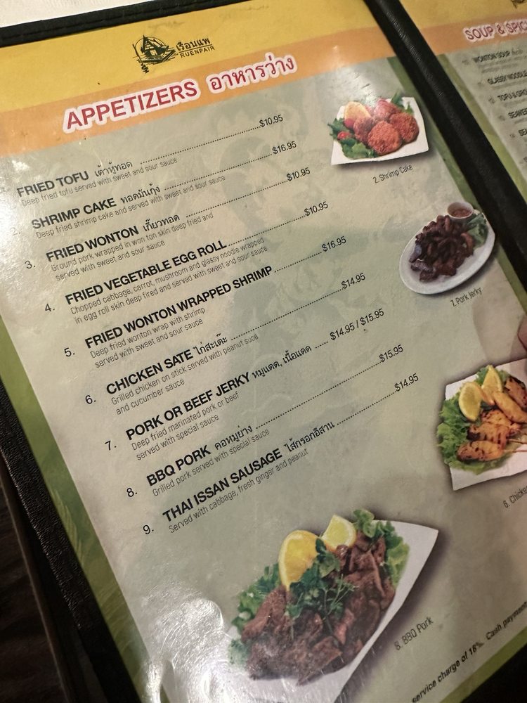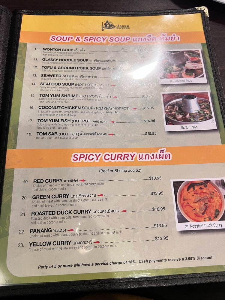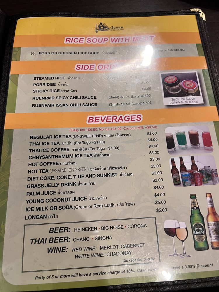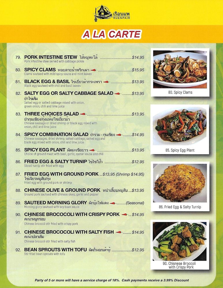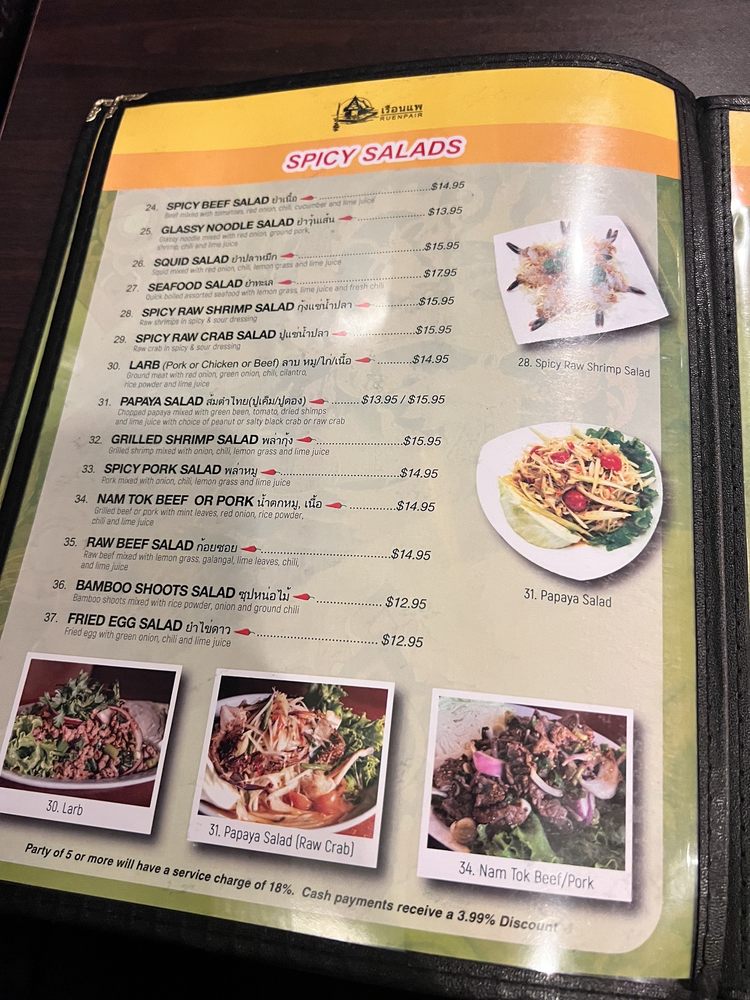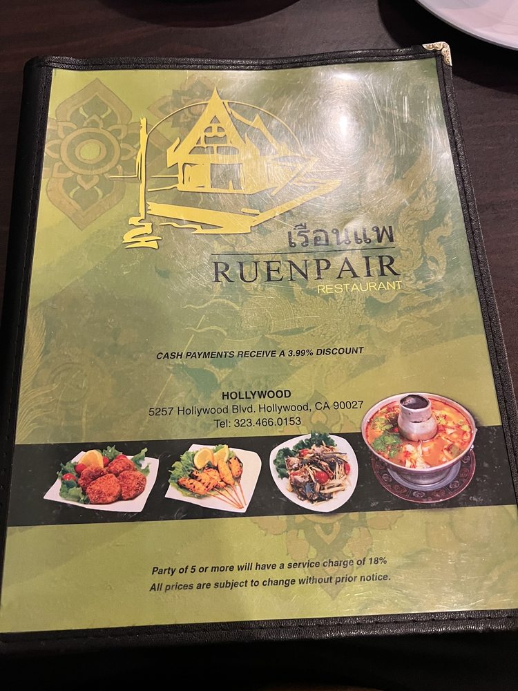 Ruen Pair, located in Los Angeles, offers a taste of authentic Thai cuisine with a range of dishes to satisfy any palate. With a cozy ambiance and friendly service, customers can enjoy a variety of flavorful options like papaya salad, green curry, yellow curry, and the renowned tom kha soup. The menu also includes classics like pad thai, pad see ew, and garlic greens, all prepared with fresh ingredients and customizable spice levels. Customers rave about the delicious flavors, fast service, and accommodating staff at Ruen Pair. Whether you're craving a comforting bowl of noodles or a zesty salad, this Asian-owned restaurant delivers on taste and quality. Don't miss out on their signature dishes and inviting atmosphere for a true Thai dining experience in LA.